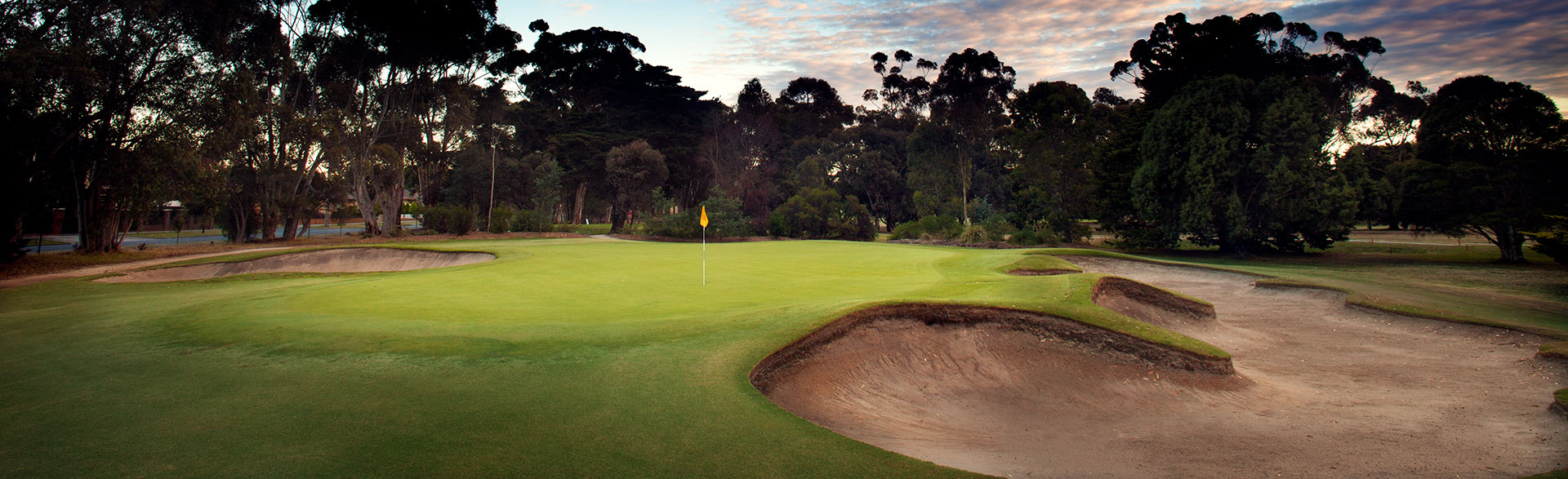 A very challenging medium length par 3 with bunkers on both sides of the green. A 150 metre carry will avoid the the right green side bunker which comes around the front of the green. Out of bounds on the left.